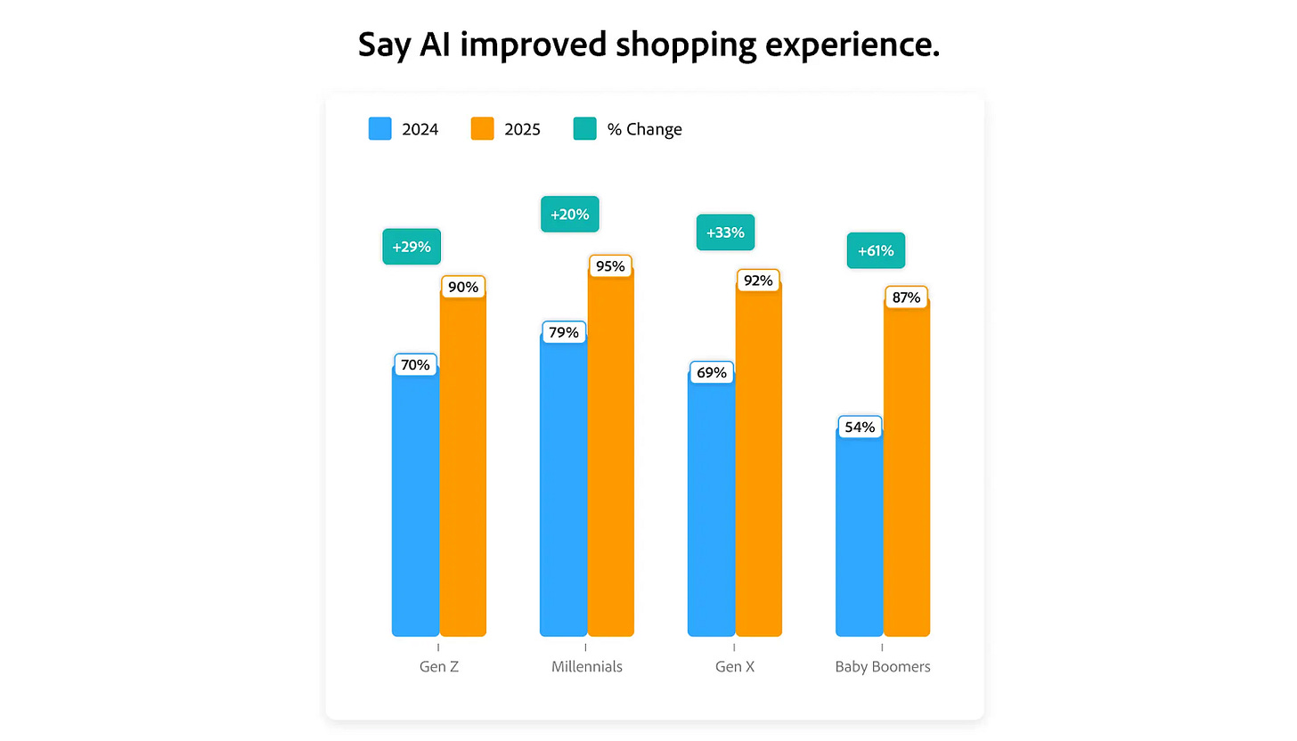 Source: Adobe report from early 2025 showing that people enjoy using agents for shopping