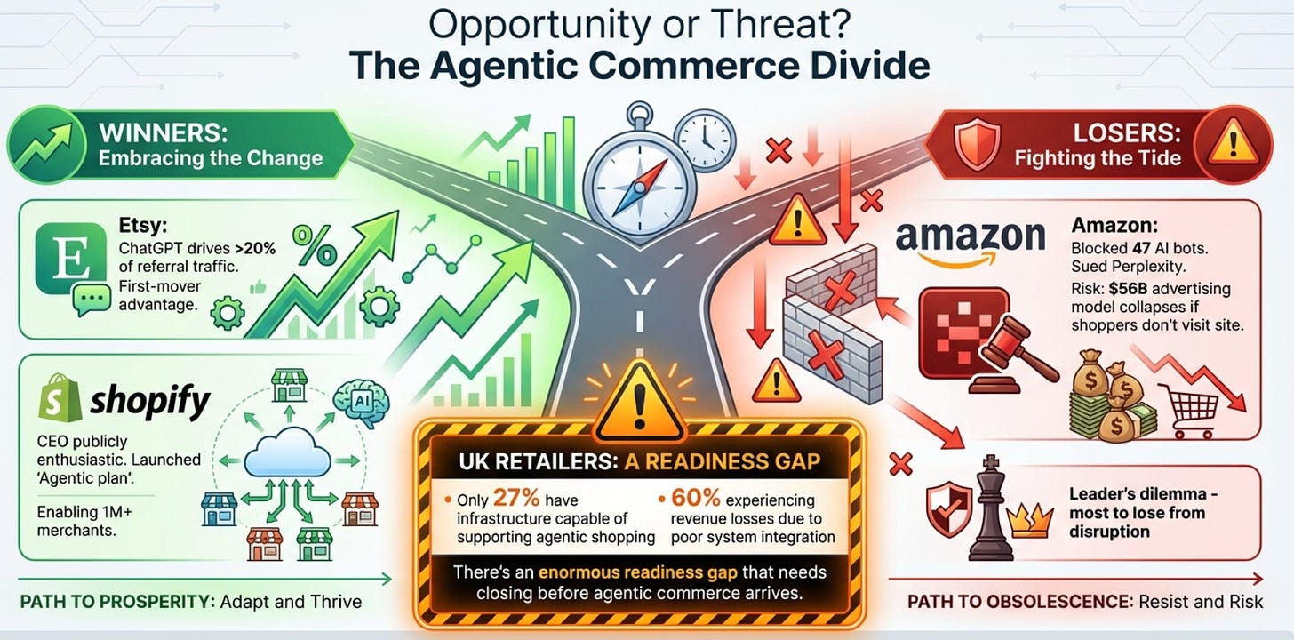 And UK retailers have a particular reason to pay attention. A recent Patchworks survey of 200 UK retail technology leaders found that only 27% have technology infrastructure capable of supporting agentic shopping, with 60% experiencing annual revenue losses due to poor system integration. There’s an enormous readiness gap and it needs closing before agentic commerce arrives on this side of the Atlantic.